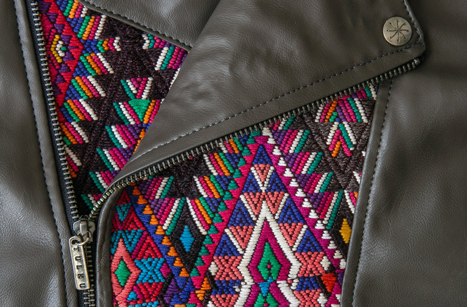 Our heritage collector vegan leather jackets are individually custom made and hand sewed. They include pieces that take up to 5 months to hand embroidered by indigenous women around the world. We aim to help keep these ancient traditional arts alive and thriving into the future.